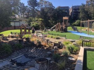 footprint, with child friendly plants, a dry riverbed, logs, tree stumps and loose