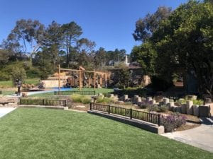 accessible plaza with views of the playground. Fencing has been expanded around the east