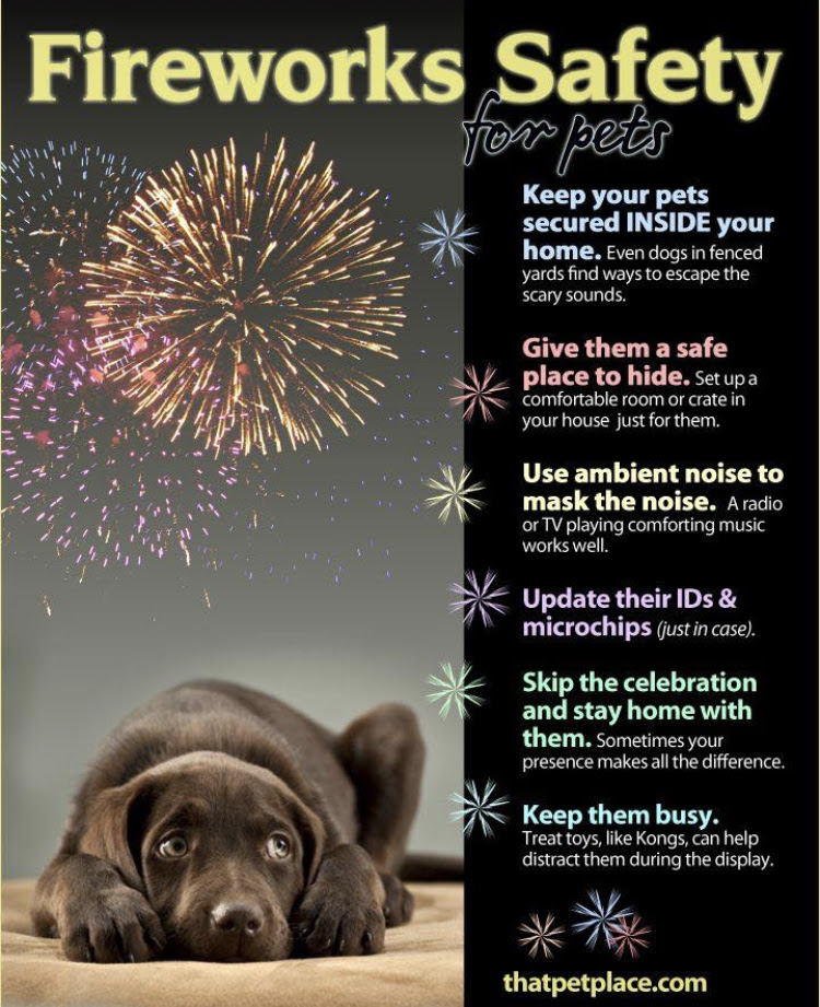 The attached flyers provide information on alternatives to setting off fireworks, dangers of fireworks including sparklers and tips for keeping your pets safe.