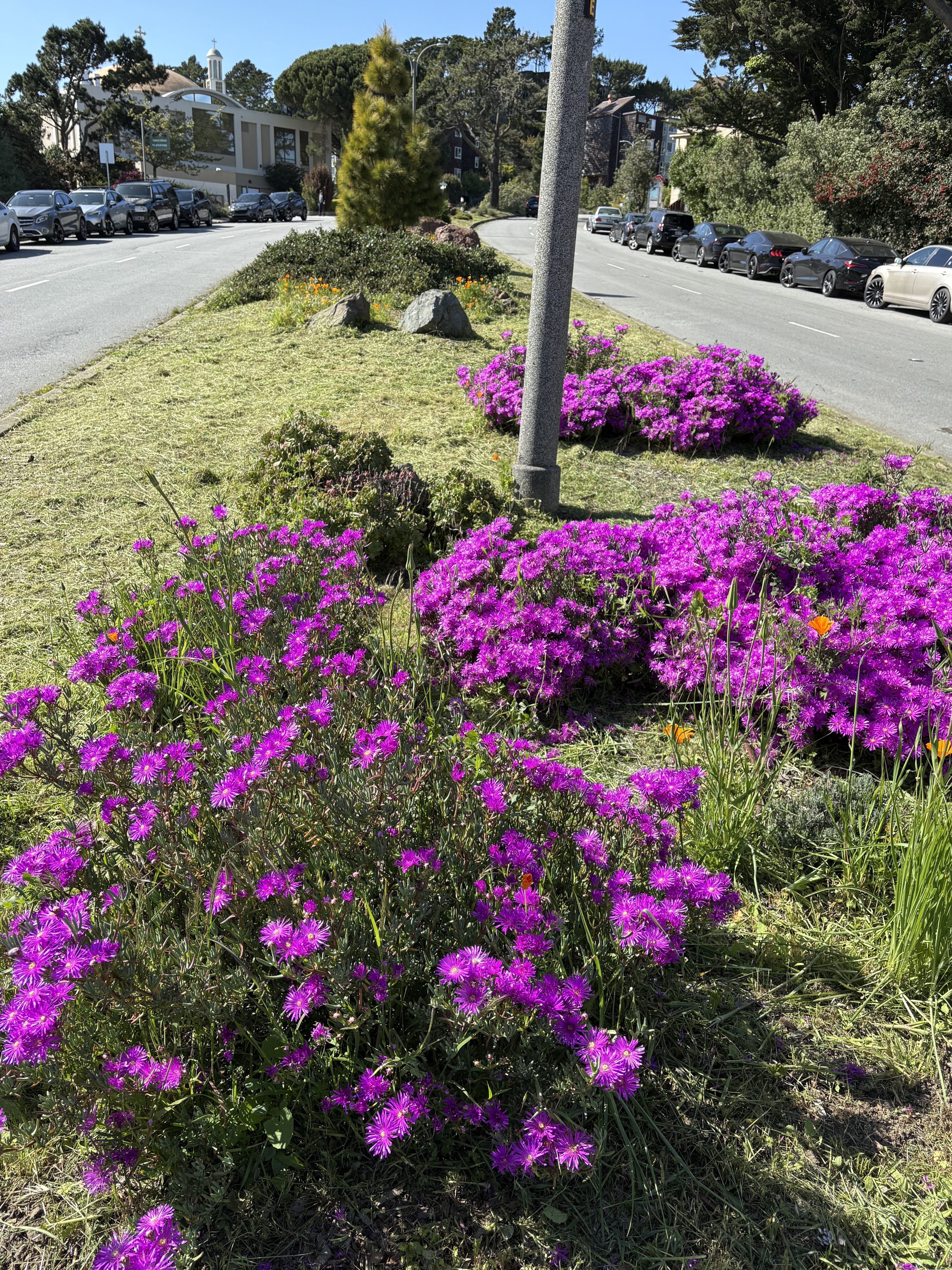 This month we will try a new approach in an Eagle Scout Project by installing soil barrier cloth, planting ceanothus (California lilacs), and then spreading mulch on a portion of the median. Volunteers are needed to work with the Scouts on May 25 to help install plants anytime between 9:00 am and 2:00 pm.